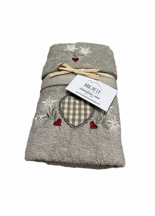 Completo letto Matrimoniale in cotone con fantasia serie Stefy, colore Beige o Grigio Completo letto Matrimoniale in cotone con fantasia serie Stefy, colore Beige o Grigio